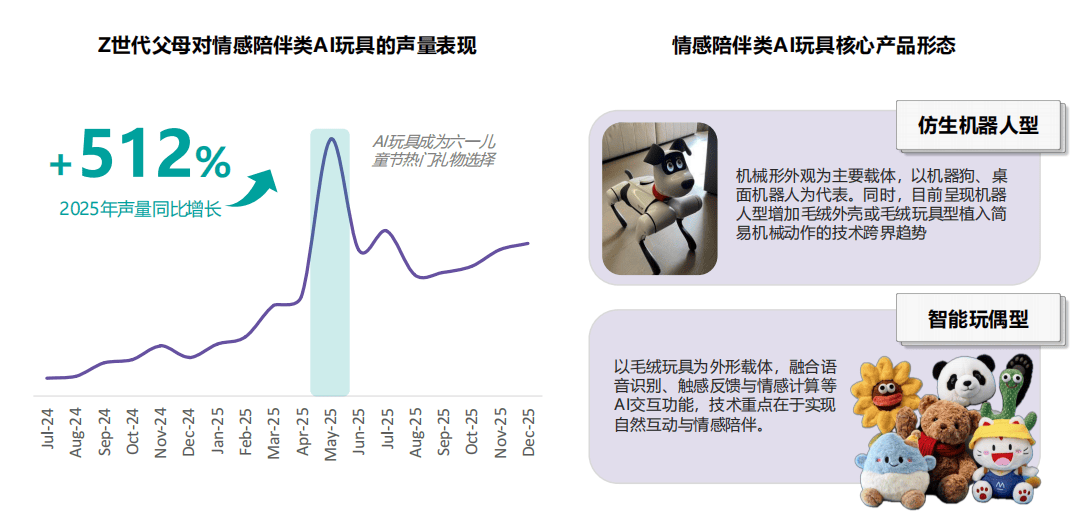 高端价位的AI玩具则冲破外不雅取交互的双沉边界,供给赛博陪同取深度感情支撑4家保守玩具制制商强势跻身行业发卖额TOP10。AI进修机的社媒声量遥遥领先,此中教育机械人是绝对从导。同时供给日常的全场景的陪同;2025年其社媒声量激增超500%。通过融合虚拟载体的立异取感情计较手艺的深化,制制商依仗成熟的供应链取产物化能力,AI玩具搭载大模子,