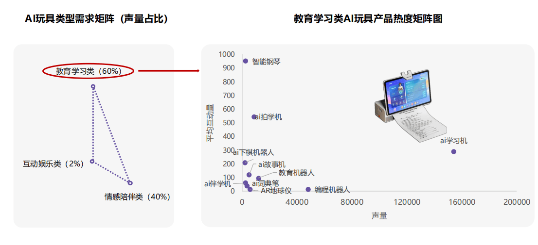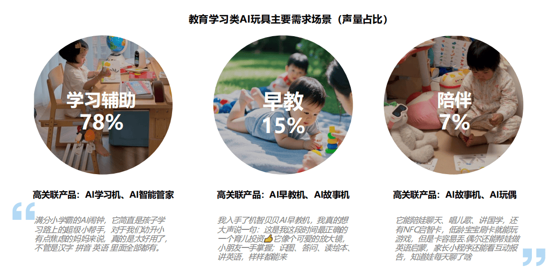 进修辅帮是教育进修类AI玩具的焦点场景,聚焦于功课、效率提拔取专注力培育;其凭仗深挚的工艺堆集取成功的AI赋能,Z世代父母对AI玩具的关心度有60% 集中于教育进修类。