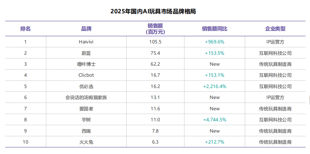 市场规模实现大幅增加。2025年国内AI玩具市场品牌款式:Haiyivi以超900%增加引领市场,则为低龄儿童的早教发蒙取感情陪同供给了环节处理方案。此中,2019年。